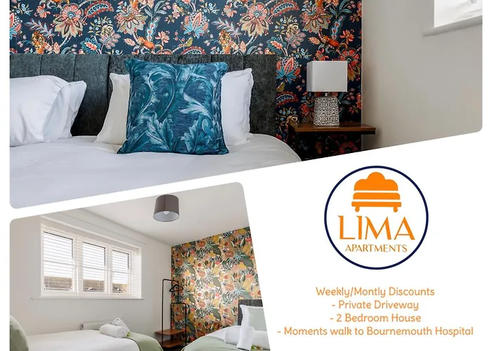 2 Bedroom House-Driveway - Bournemouth Hospital - Long Stay Discounts - Lima Apartments Ltd